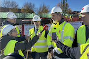 El viceconsejero de Vivienda, Transportes e Infraestructuras, José María García, acompañado del alcalde de Valdemoro, David Conde, ha visitado esta mañana las obras de las 39 viviendas públicas en alquiler que se están construyendo en la calle Gabriela Mistral del municipio.