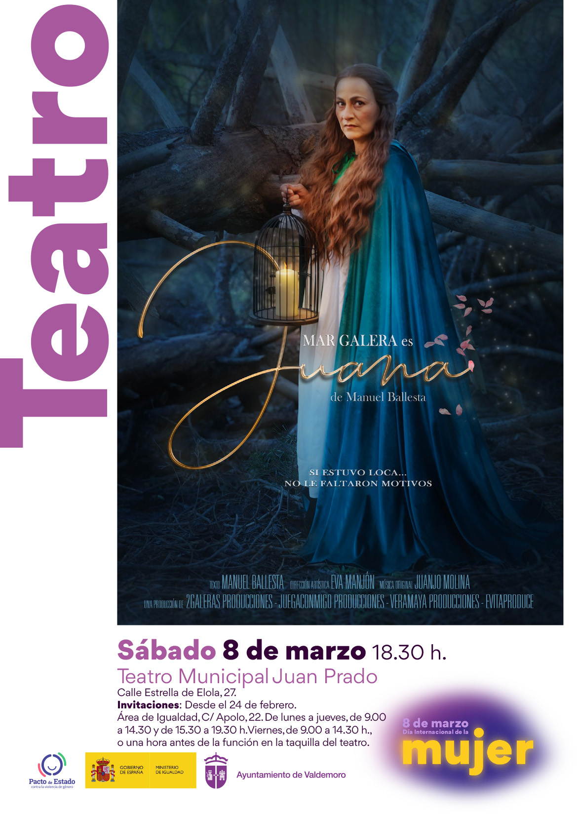 SINOPSIS: La obra revive la figura de Juana I de Castilla, conocida como Juana la Loca, en un intenso monólogo que busca dar voz a una mujer silenciada y maltratada por la historia, que fue engañada, vejada y apartada de los suyos porque no interesaba que ascendiera al poder. En un momento de lucidez, dentro de su soledad y confinamiento eterno, Juana analiza los acontecimientos. Habla con ella misma, con su hija Catalina, la última que le arrebataron de sus brazos, tal vez con sus dioses, y también con el pasado.