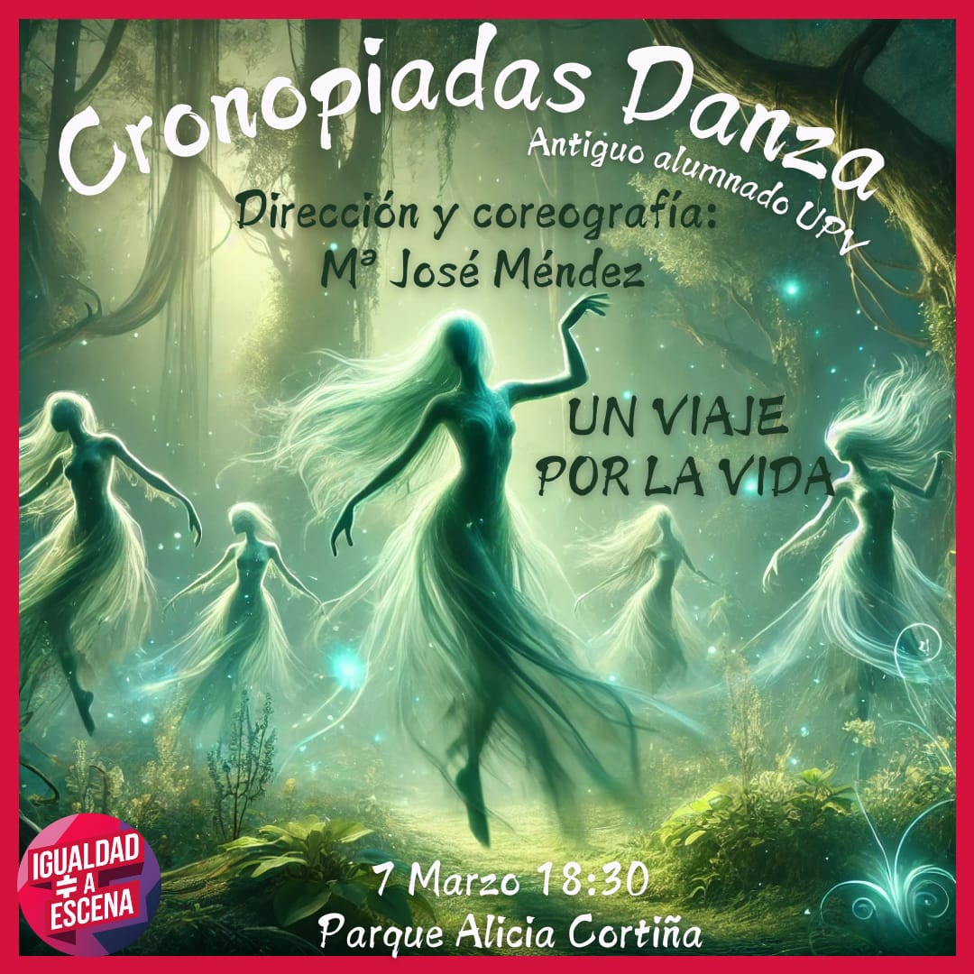 A cargo de: Cronopiadas Danza, dirección y coreografía de Mª José Méndez (grupo formado por antiguo alumnado del taller de danza de la UPV). ACTIVIDAD SUSPENDIDA POR LA PREVISIÓN DE LLUVIA