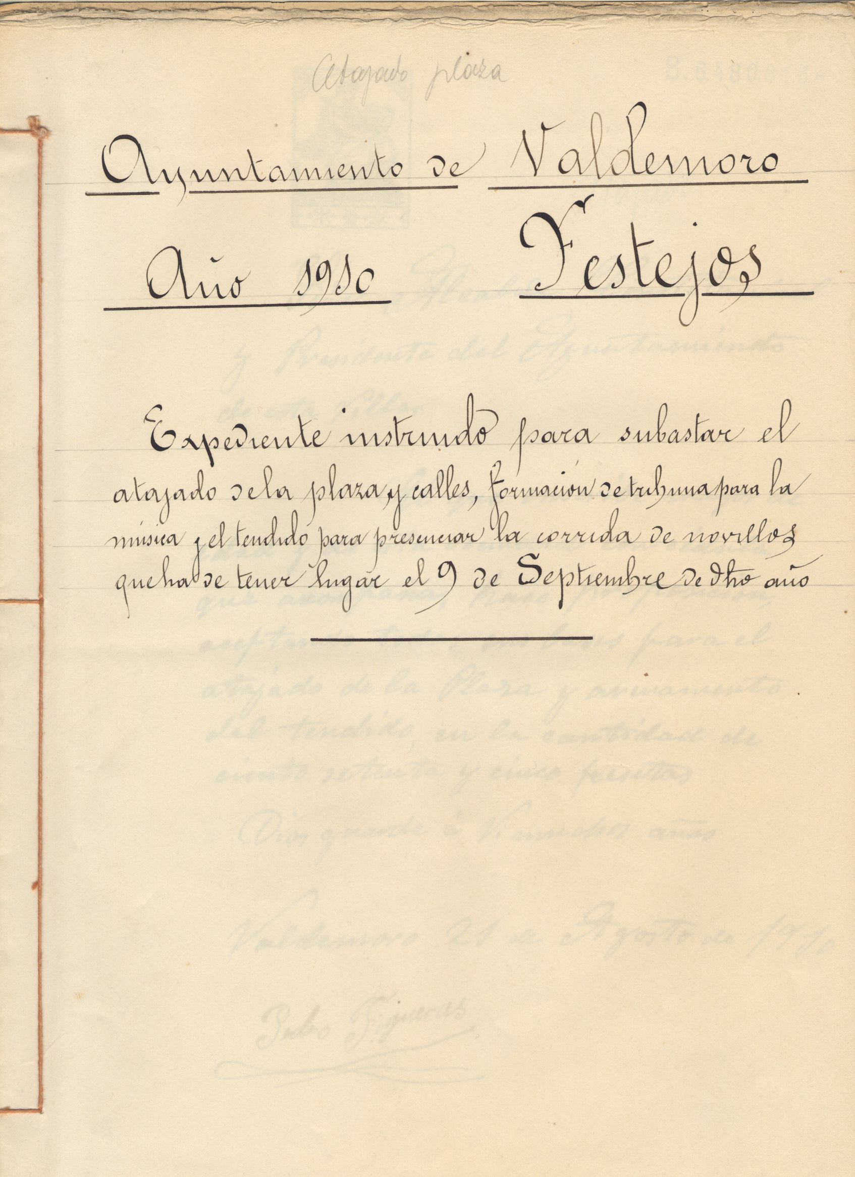 En mayo de 2015 el Ayuntamiento ha organizado una exposición fotográfica que, con el título De plaza a albero, descubre cómo se desarrollaban los festejos taurinos en la plaza de la Constitución. Las imágenes seleccionadas pertenecen al Fondo Vecinos del Archivo Municipal y permiten observar la evolución de la escenografía del coso taurino a lo largo de casi 75 años (1900-1974). Como complemento de esta muestra se han elegido tres documentos del Archivo Municipal que evidencian la importancia de uno de los elementos anexos que formaban parte de la arquitectura efímera de la plaza de toros: la tribuna de los músicos. La primera pieza se trata de un expediente de festejos, tramitado para adjudicar por medio de subasta el atajado [cortado o cerrado] de las calles, formación del ruedo y la construcción de la tribuna de los músicos. Los dos restantes son una pareja de imágenes, ambas captadas por la cámara de Pedro Rincón, fotógrafo aficionado autor de un legado de más de quinientos ejemplares que retratan Valdemoro entre 1920 y 1970. Las fotos están separadas por un periodo cronológico de tres décadas pero reflejan el mantenimiento inalterable de la estructura arquitectónica utilizada para las actuaciones musicales de la banda del colegio de Guardias Jóvenes Duque de Ahumada.